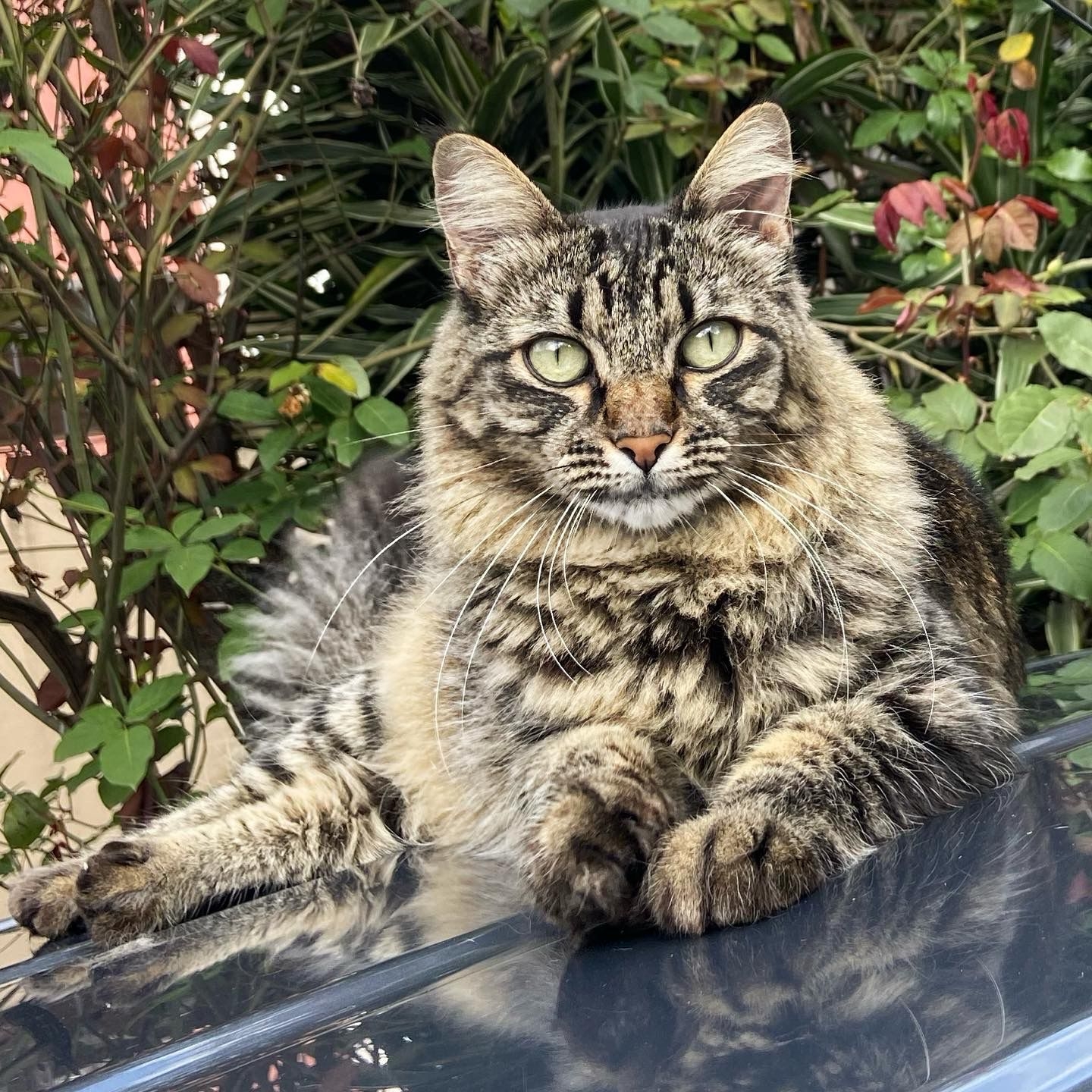 A Valentina é uma gata tigrada preta, branca e cinza e tem olhos verdes. Ela perdeu o canino esquerdo e tem uma unha torna na pata traseira esquerda. Ela é um pouco assustada e costuma ser dócil com pessoas, com outros animais ela tem medo e pode ser agressiva. Ela é o amor da minha vida.