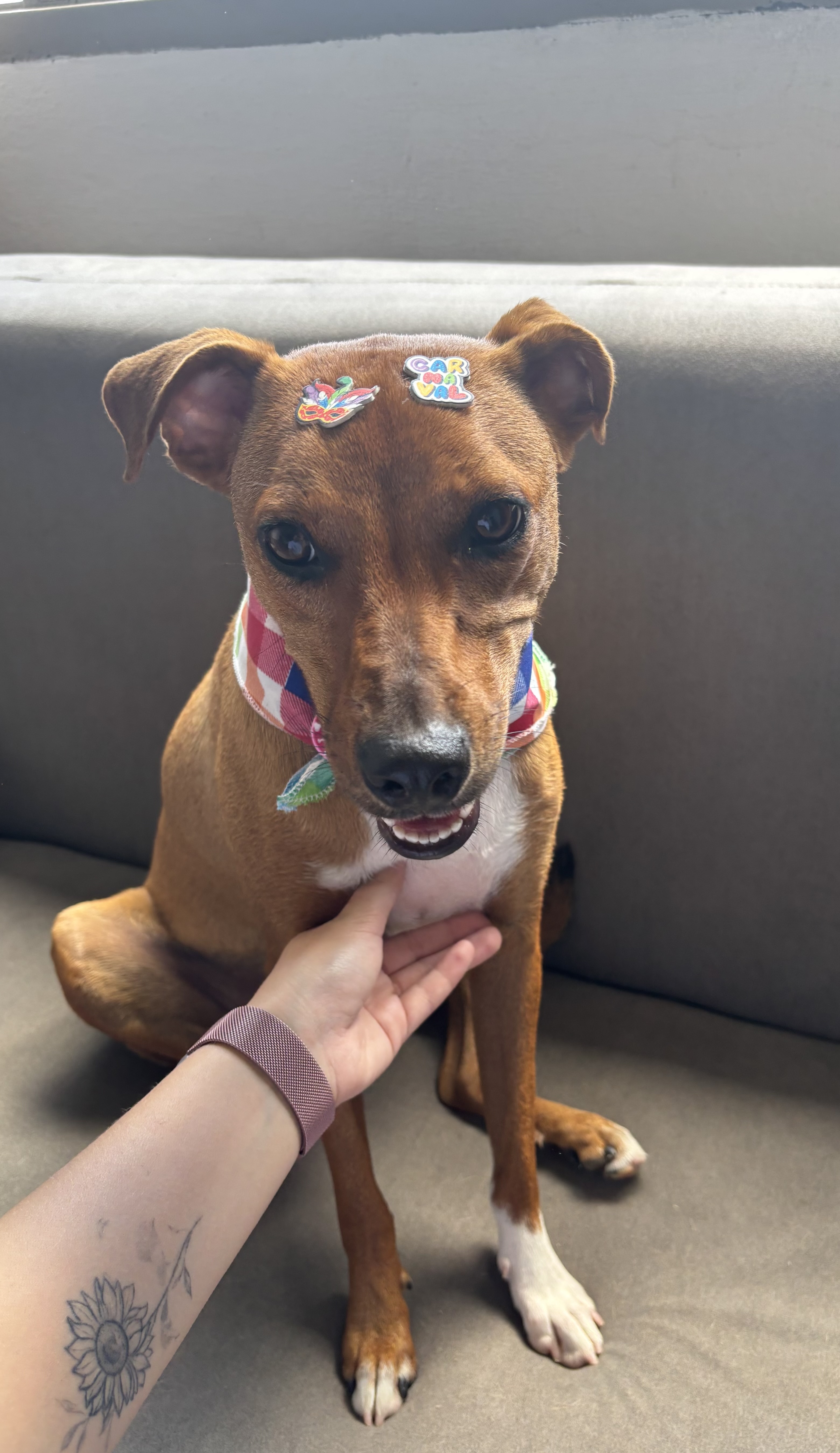 Ela é uma vira-lata super dócil! Ama pessoas e qualquer tipo de animais