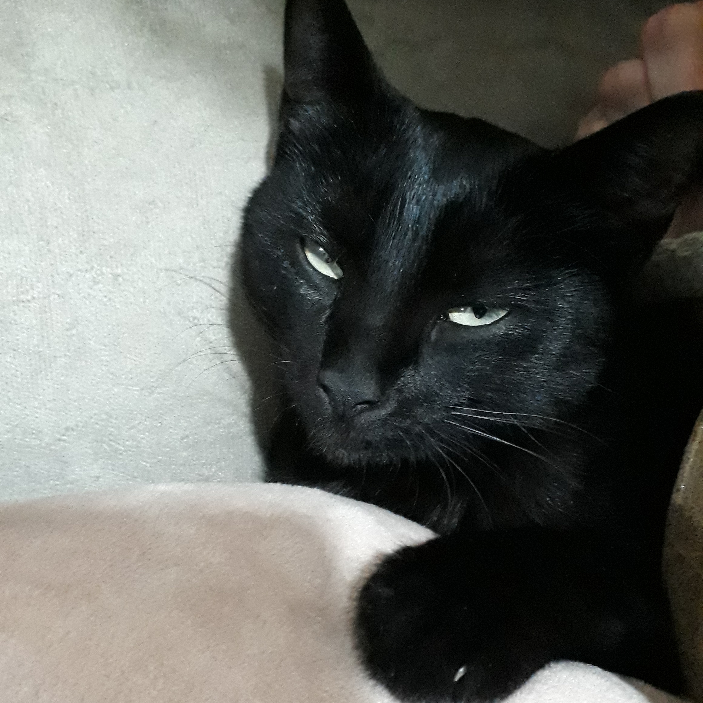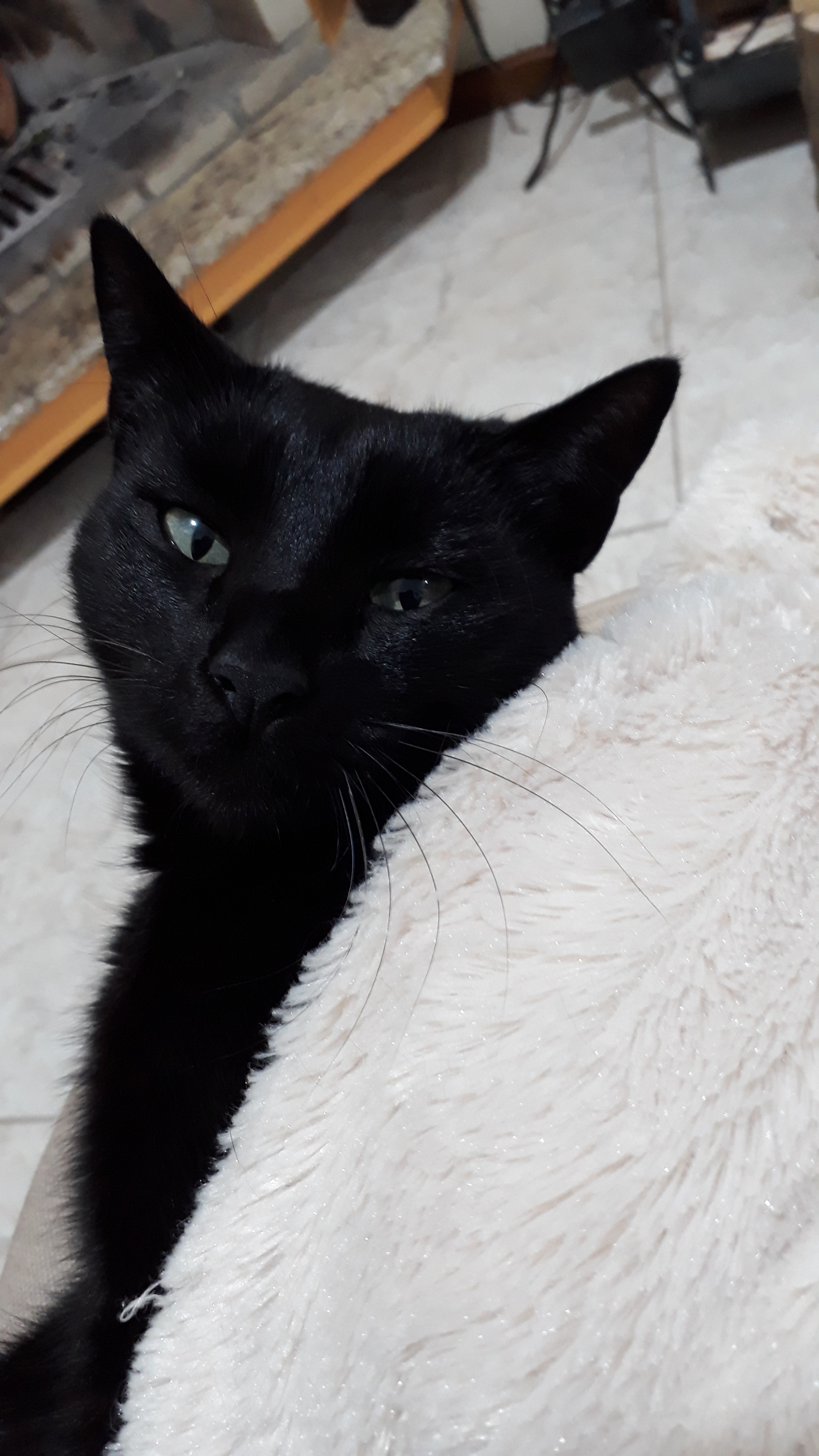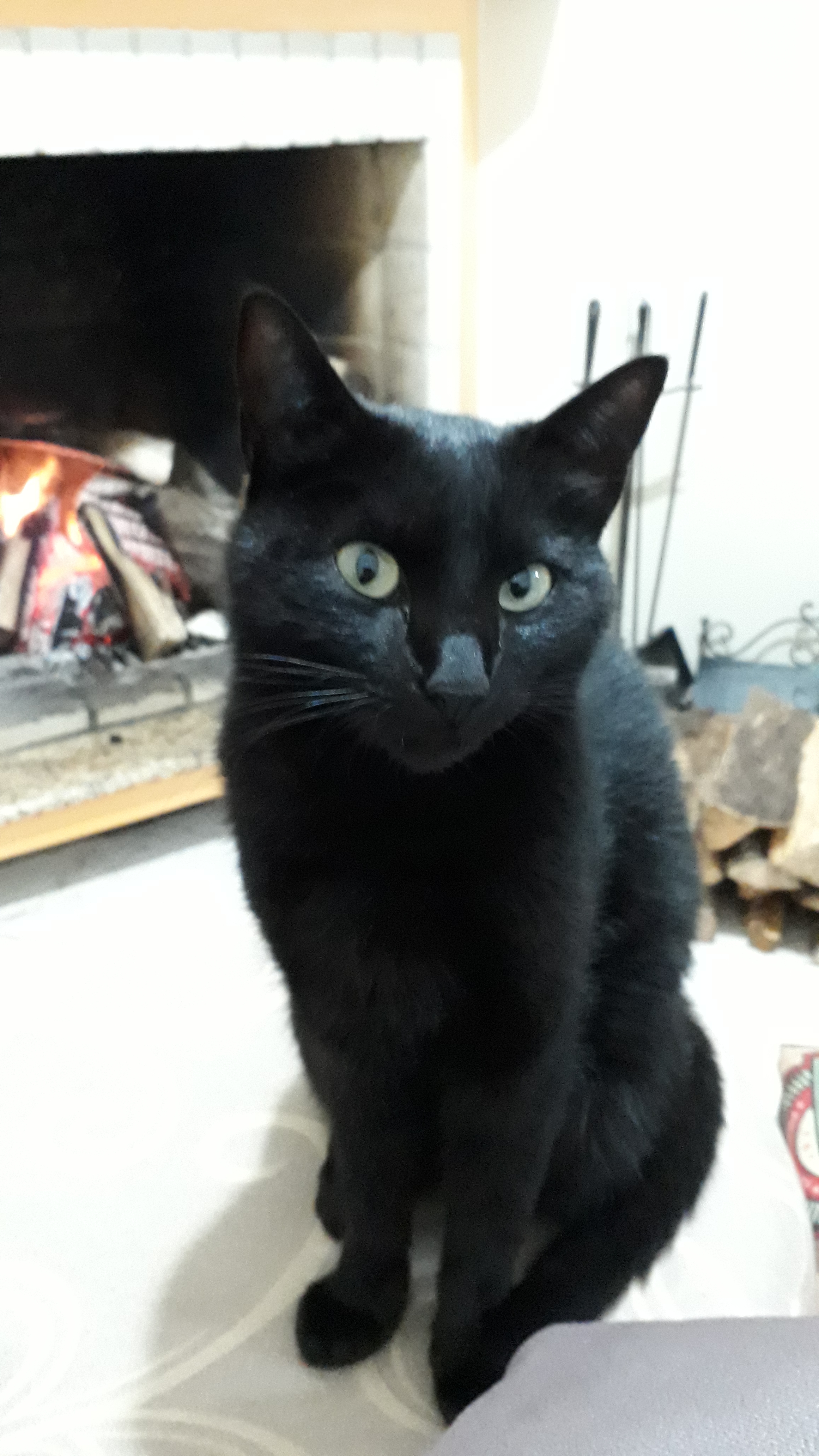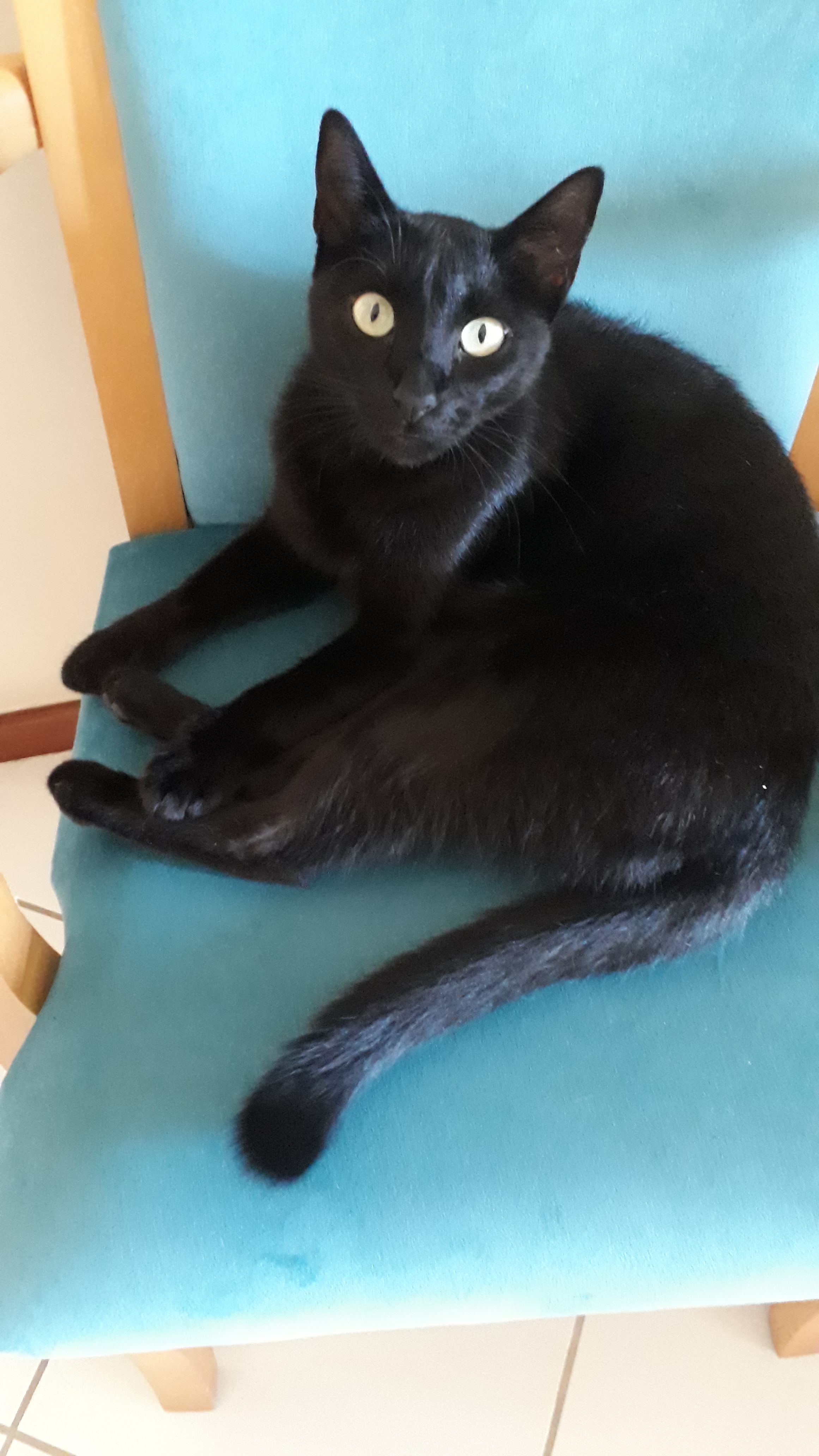Gata Preta !!!! com a orelha esq com uma marca provável briga. Passeia por todos os telhados vizinhos, caça (rato, passarinho, morcego entre outros), dócil, vacinada.