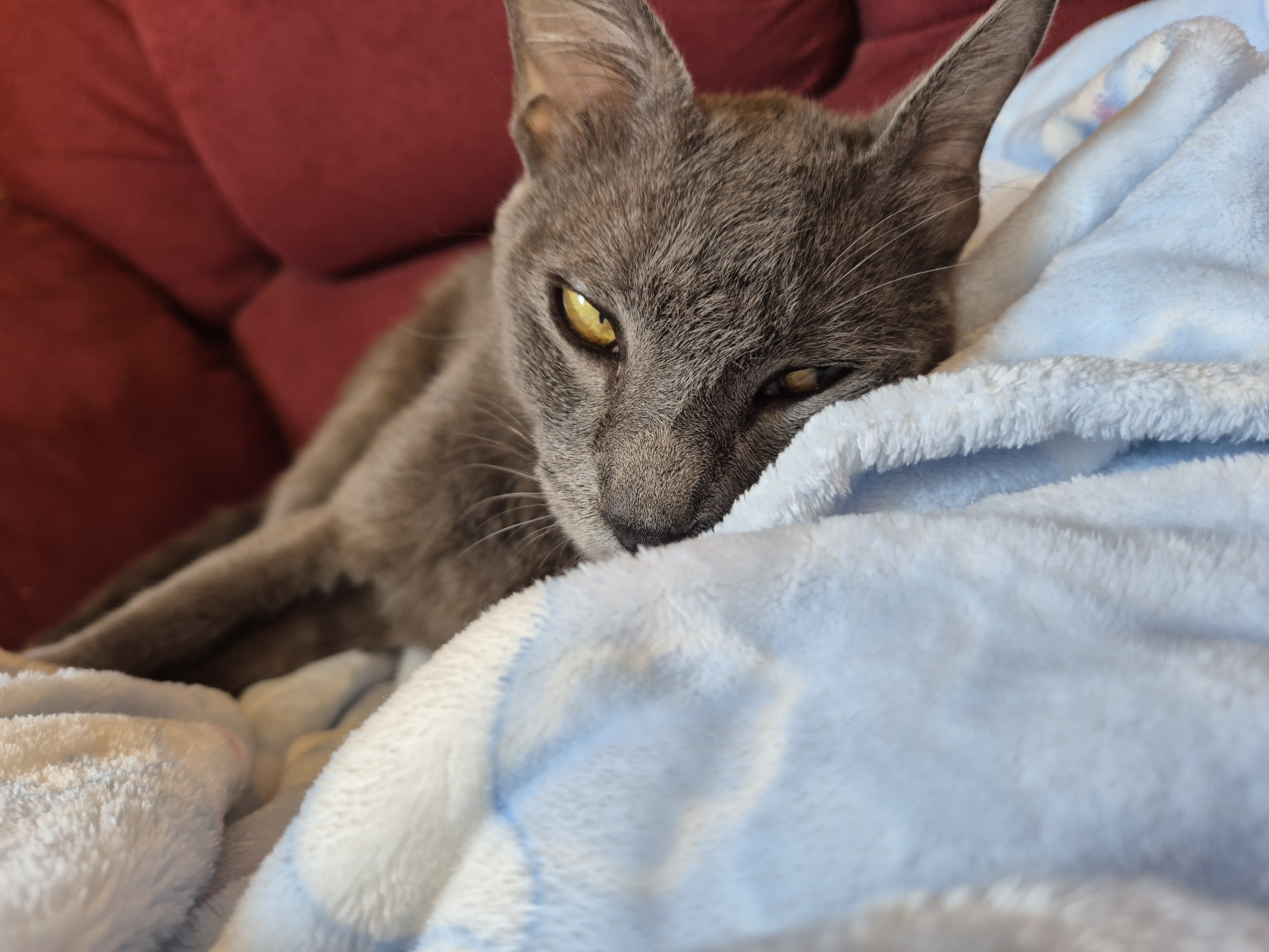 Ele é um gatinho meio assustado, pois resgatei da rua, mas é bem atrevido apronta um pouco. Quando está doente ele faz xixi em tapetes, plantas ou roupas pra chamar atenção.