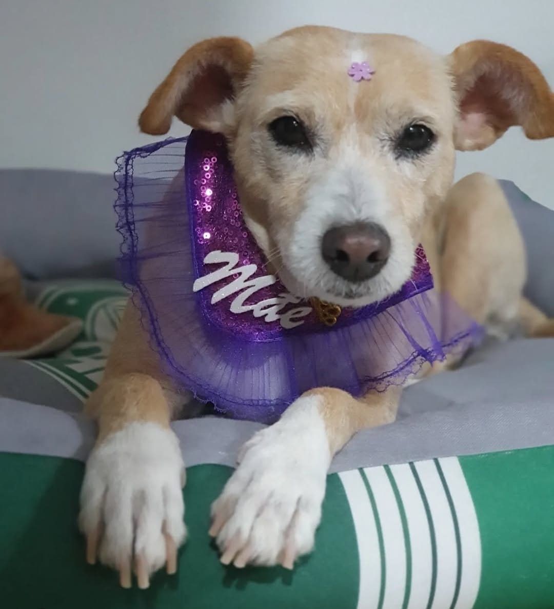 Francisca é um amor. Foi adotada quando tinha aproximadamente 4 anos. É muito companheira. Tem muito medo de fogos, ônibus, caminhões e escapamentos de moto.