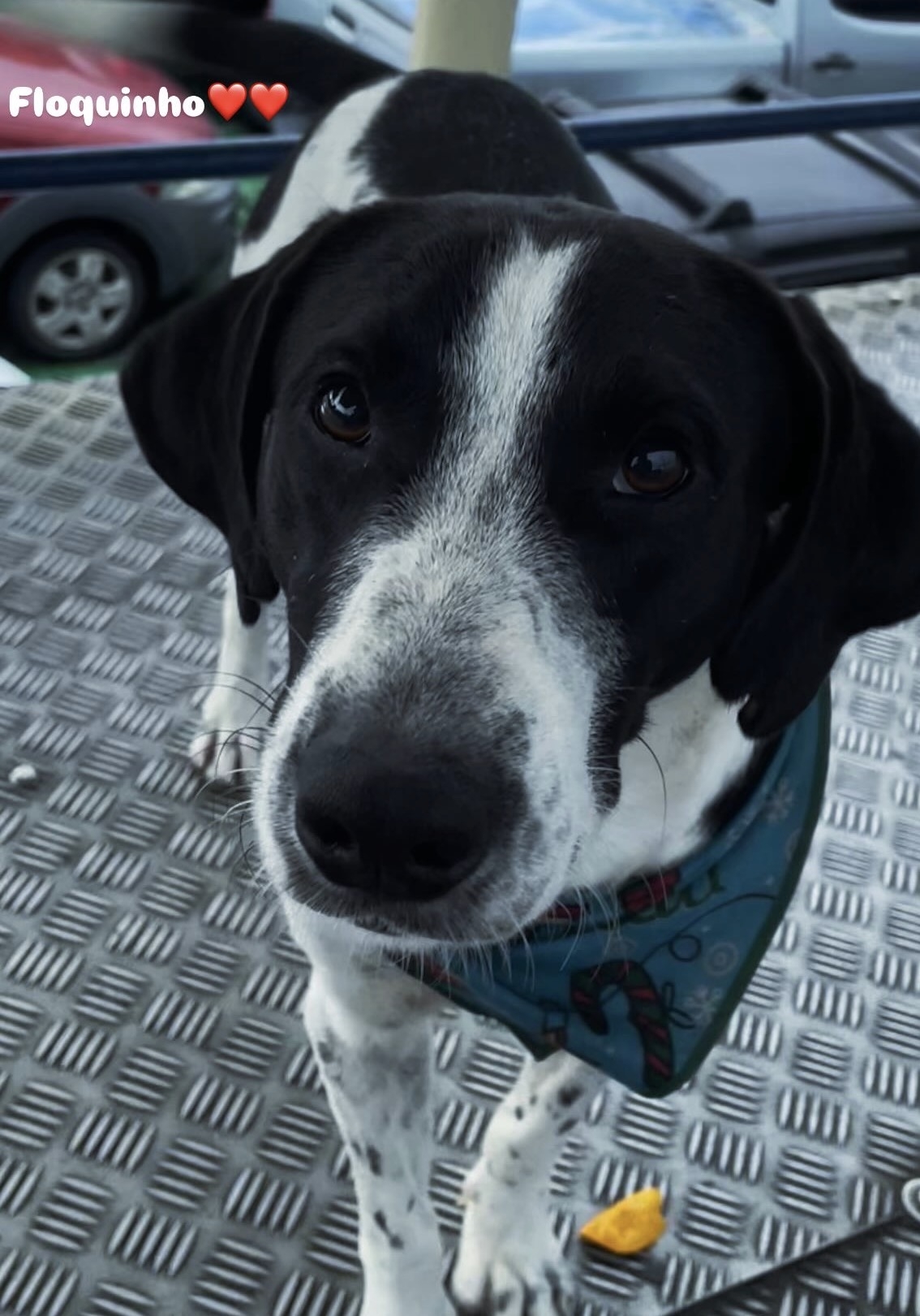 Cor- preto com branco,olhos escuros,está de coleira vermelha com o nome FBI,ele fica na balsa de Porto Seguro,junto com os cachorros : Tadeu e Jade. Fale com a dona: Ninna (73) 982001717