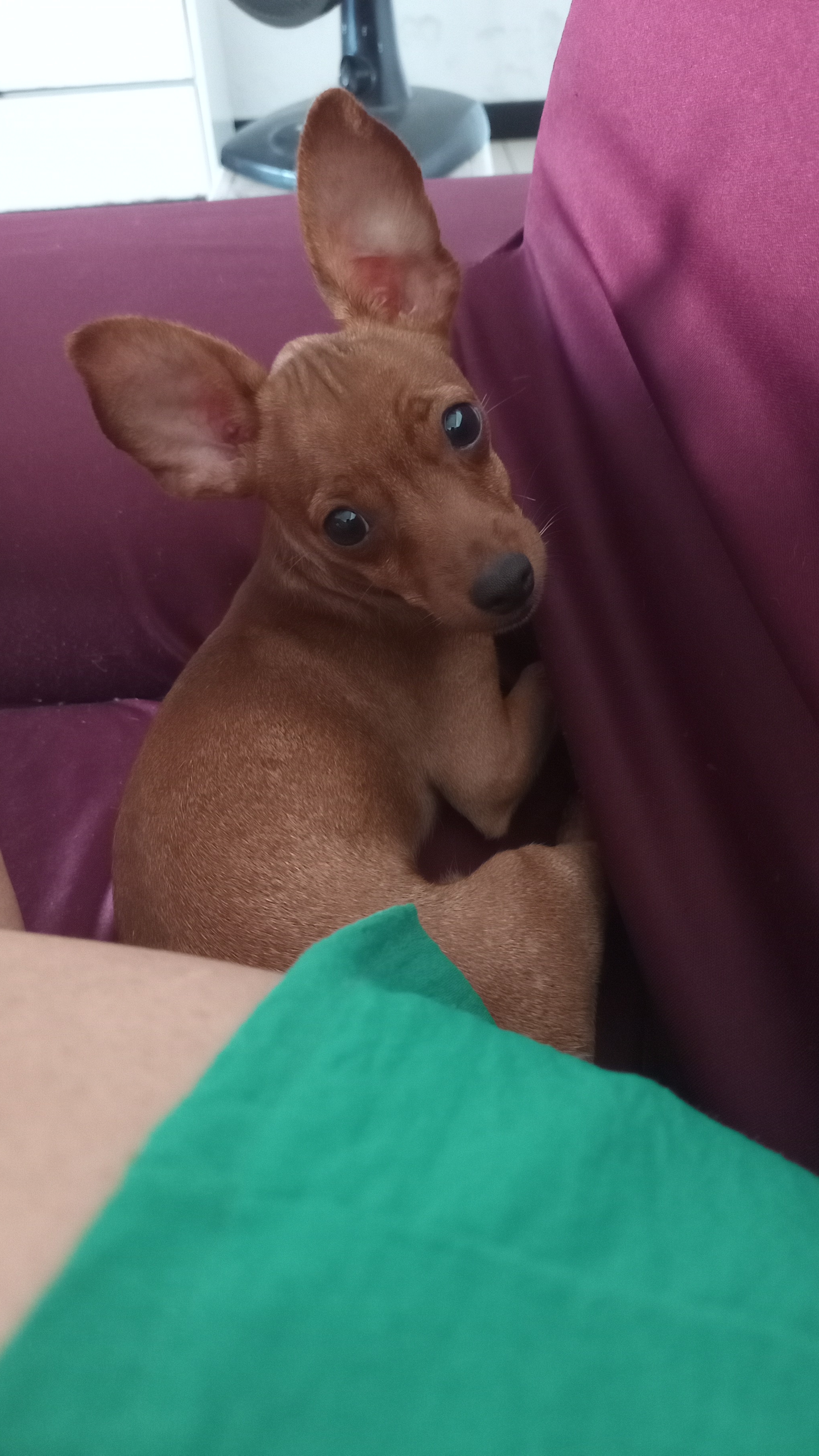 Pinscher pequeno cor caramelo